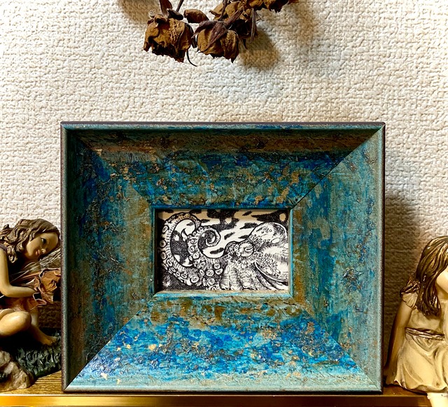 『ようこそお人間様 私達以外の者が来るコトは これはこれは珍しい どうぞお入りくださいな ところで 美味しいご飯はお持ちになっていらっしゃいましたか?』 ✒︎画材:筆ペン ✒︎作品サイズ:90mm×70mm ✒︎額縁サイズ:114mm×93mm ※箱無し ◆筆ペンでモノクロームの世界を描いています。 ◆線と線がぶつかり交差し弾けながら、無から有へと生まれ変わるキャンバス。 もし、その中の一つ一つに意味があるのなら、百人いれば百通りの意味と思考が存在する様に、 自分の絵にも、見てくれた人の数だけ意味が存在する。 それは、ワクワクだったりドキドキだったり、楽しかったり恐怖や哀しみ、不思議な気持ち、 様々な物語。 そんな六感で感じられる絵を描けるようにと、日々筆を走らせています。 【注意事項】 ※ご覧になっている端末・PC環境など、写真やスキャンで撮影した画像ですので、実際の商品と色味が異なる場合があります。 予めご了承の上ご購入していただけたら幸いです。