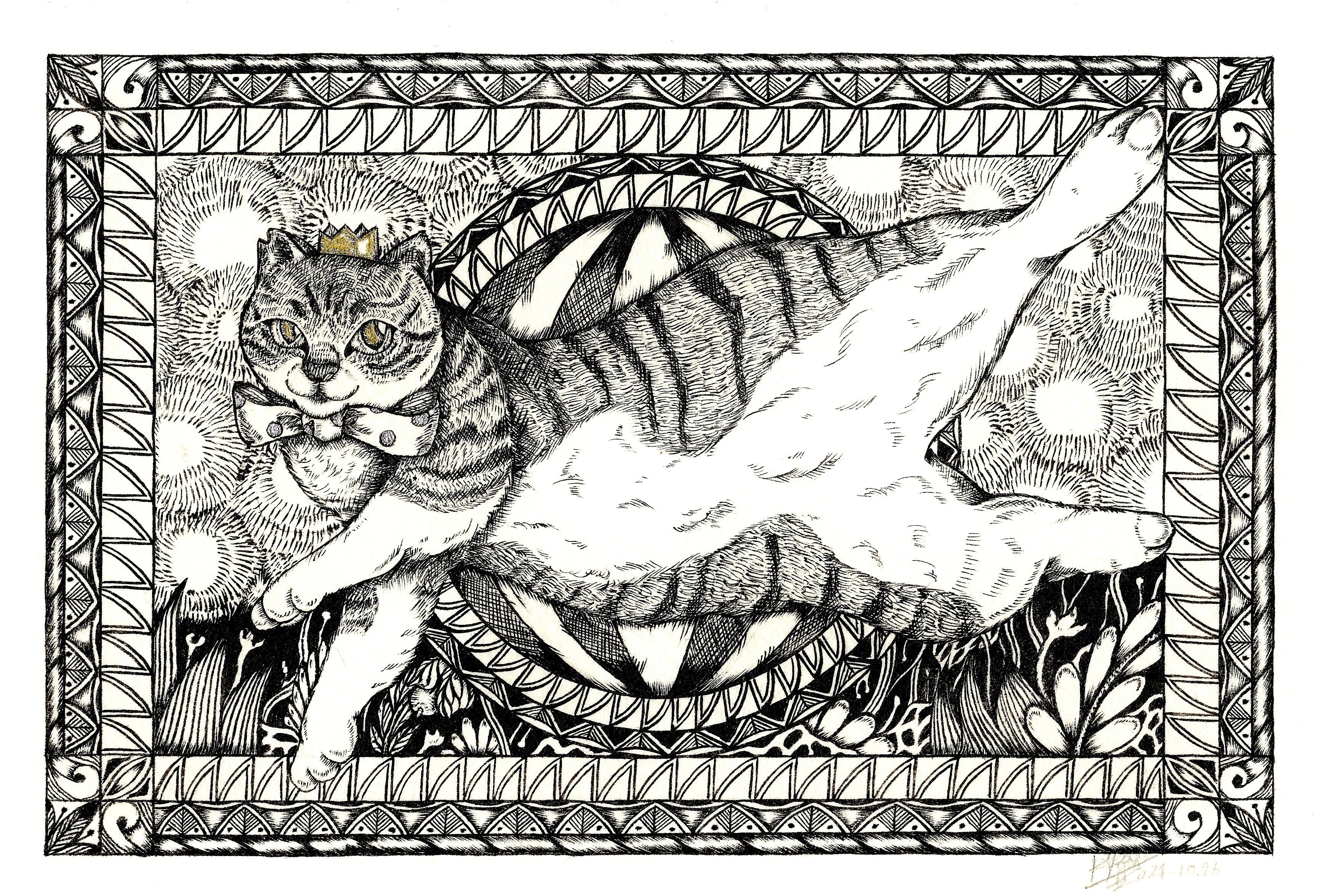 ◆筆ペンでモノクロームの世界を描いています。