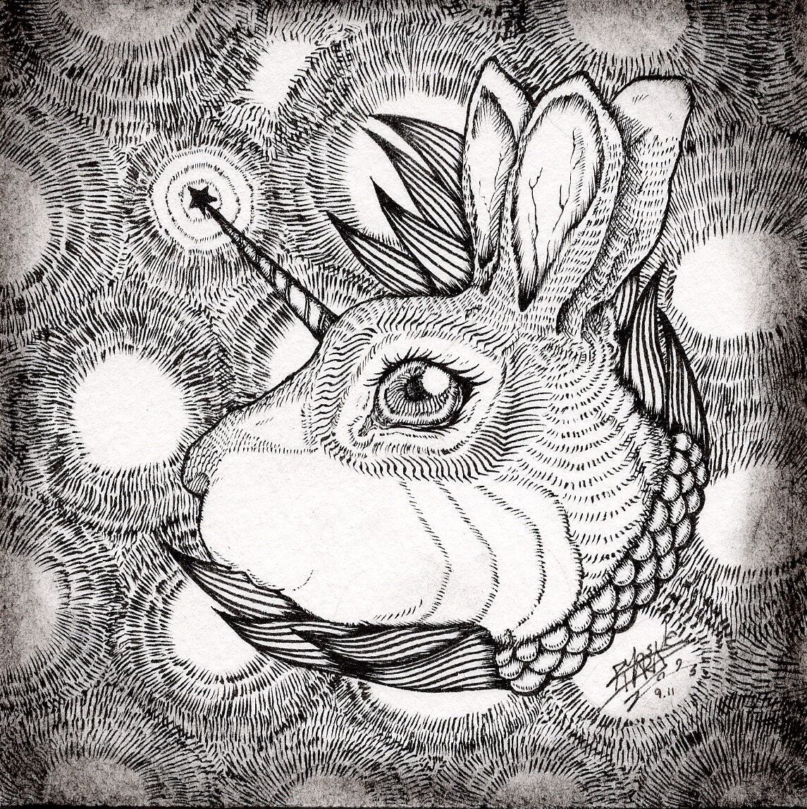 『珍しい珍しい三つ耳うさぎ 更に珍しい子をご存じですか? 世にも稀なるは三つ耳ツノうさぎ 見つけても興奮を抑えるようお願いします 宇宙(ソラ)の声を聴いている故 静かにそっと それはそれはそっと静かに』