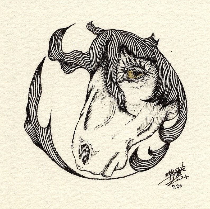 ◆筆ペンでモノクロームの世界を描いています。